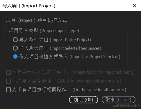 项目快捷方式,之前也称为“已共享项目”,其目的是通过建立一个项目文件,来共享素材资源。