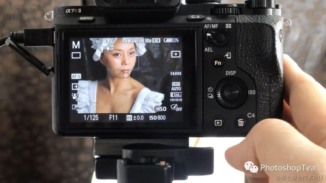 若颧骨与下巴(或前额)受光情况相差较大,在对准下巴测光的同时将EV值调到 0 档至 +1/3 档附近,此时对颧骨测光的话应该落在 +1 档附近。