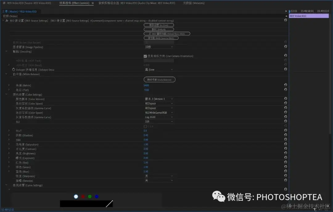 Raw 文件必定包含一个解释层,借以查看 Raw 文件本身。只要在源面板打开素材,就可在效果控件面板中查看到各个解释控件。