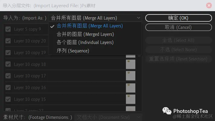如果 PSD 文件有多个图层,在导入时可选择以下选项。