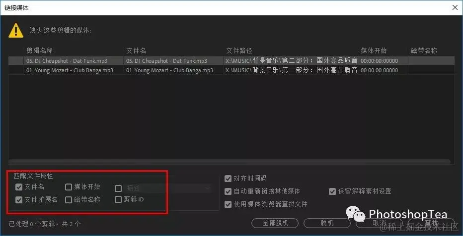 在项目面板里,也可在失链的媒体上按右键,选择“链接媒体”。
