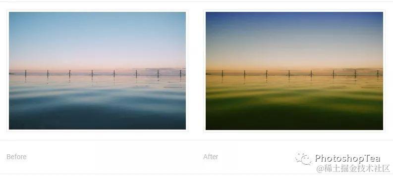 模拟使用传统的渐变玻璃滤镜,将一种颜色混合到照片的一半。