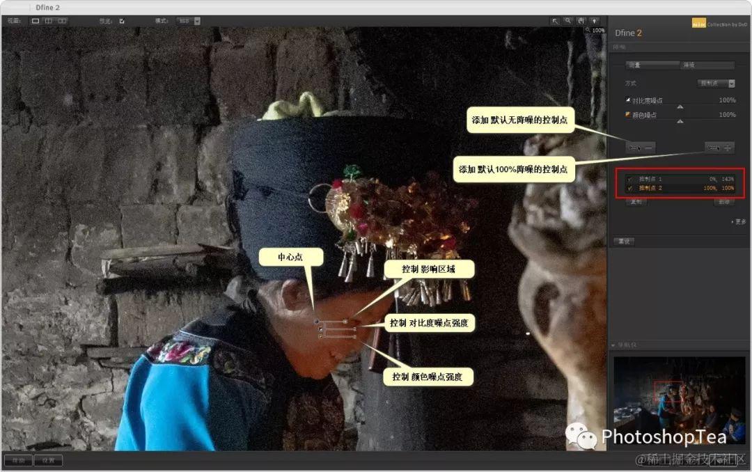 通过添加不同的控制点,可以很方便地对某个区域加强降噪,而对另一个区域减少降噪。