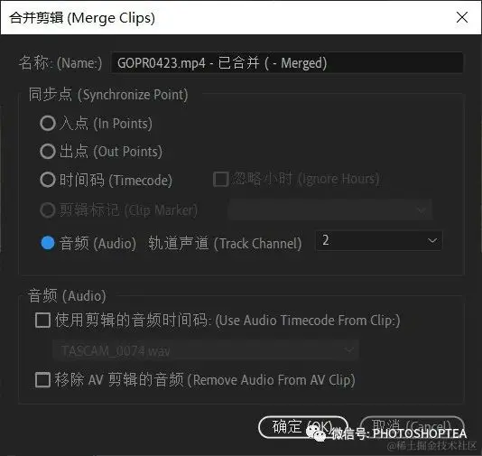 提示:除了使用音频来自动同步外,还可以使用入点、出点、剪辑标记等进行同步。