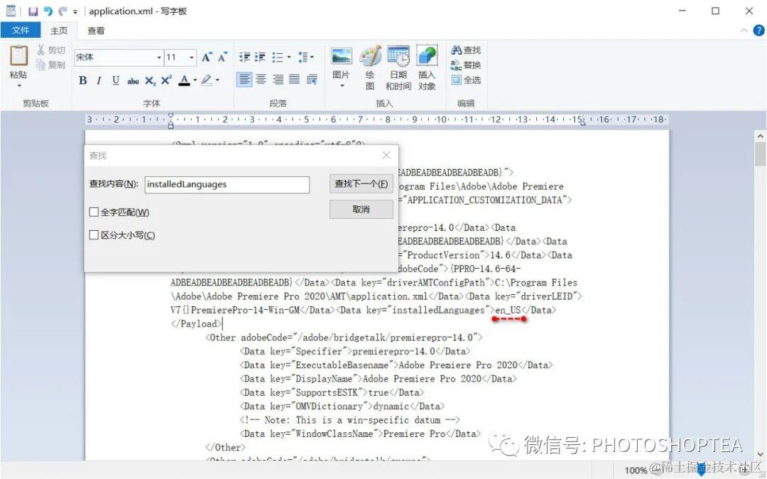 4、按 Ctrl + F 键搜索“installedLanguages”。