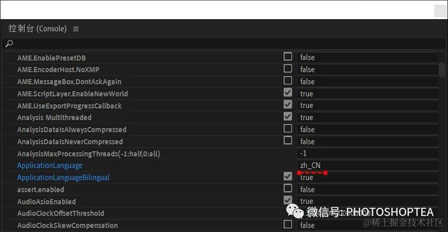 在英文界面状态下,使用控制台面板也可以改成中英双语界面。注意下图,需要手动将 ApplicationLanguage 处改为 “zh_CN”。