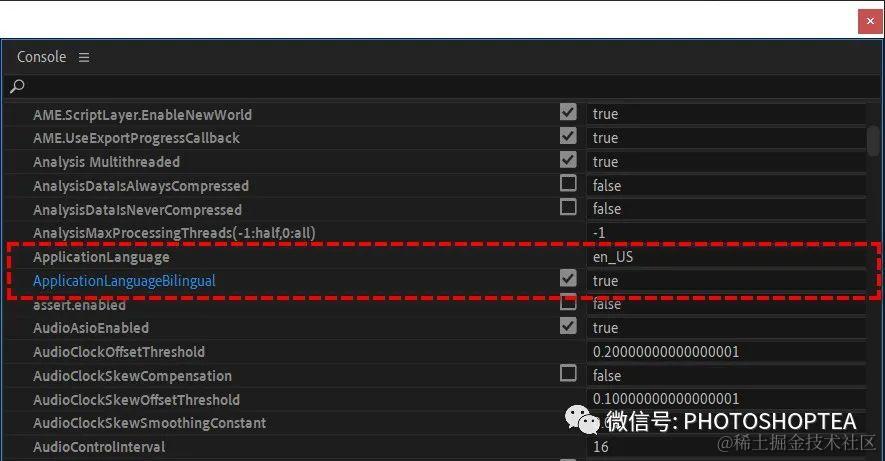 3、找到“ApplicaitonLanguageBilingual”,勾选右侧复选框。