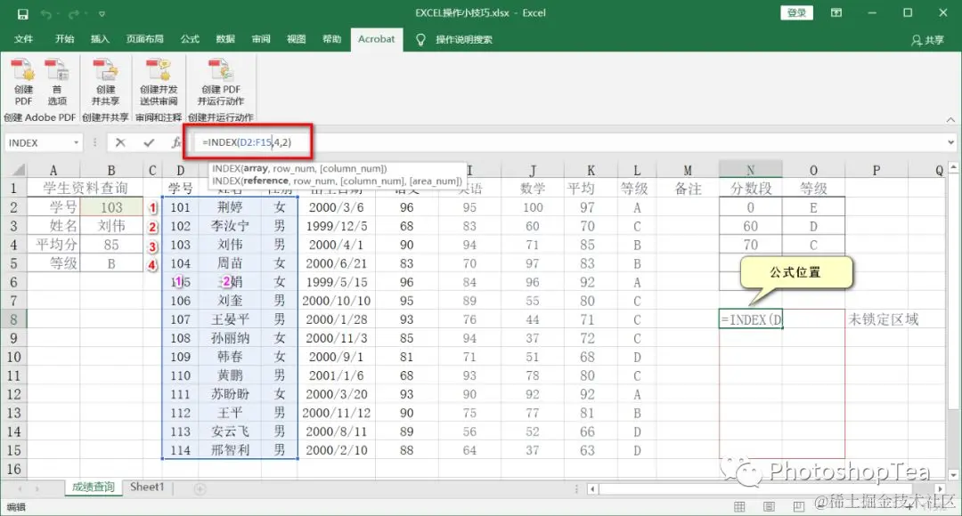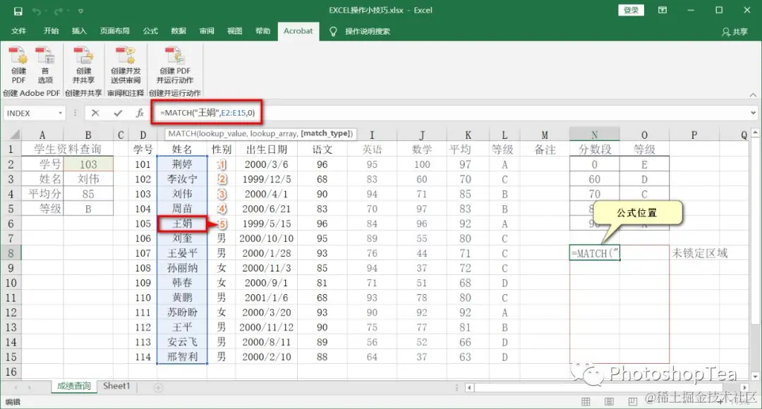INDEX 函数与 MATCH 函数是 Excel 中最常用的查询函数组合。