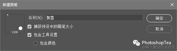 5、打开画笔设置面板控制菜单,新建画笔预设,命名为“飘雪”,以备后用。