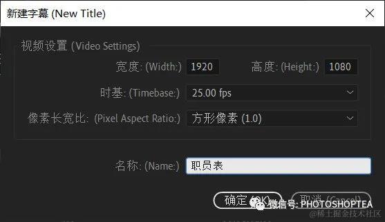 打开Pr菜单:文件/新建/旧版标题,弹出“新建字幕” New Title对话框。