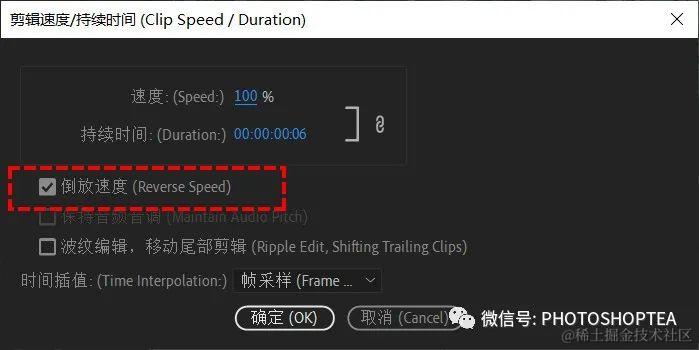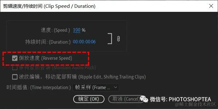 选中左右两个片段,右击选择“速度/持续时间”,勾选“倒放速度”。