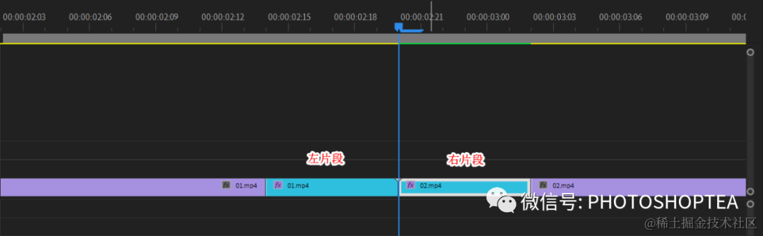 说明:以下介绍的转场方法是基于分别处理两个相邻小片段所形成的转场,而不是传统意义上的两个剪辑之间的过渡。