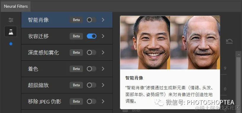 --面部年龄 Facial age:往左,去除皱纹,为头发添加灰黑色,更年青;往右,更老。