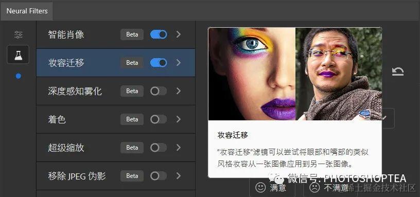 可以将眼部和嘴部的类似风格妆容从一张图像应用到另一张图像。