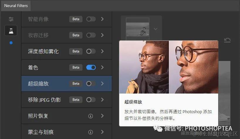 放大并裁切图像,自动添加细节以补偿损失的分辨率。