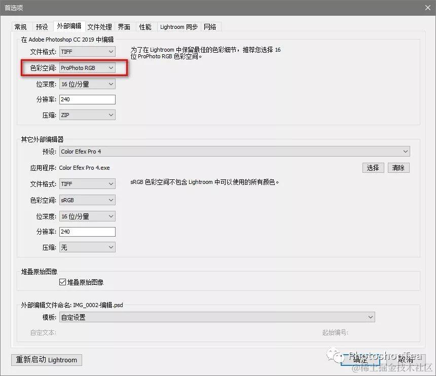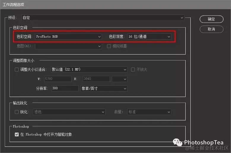 2、将 Raw 格式用 Lightroom 转片,或者从 Lightroom 进 Ps 编辑时,保持默认的 ProPhoto RGB 色彩空间不变。