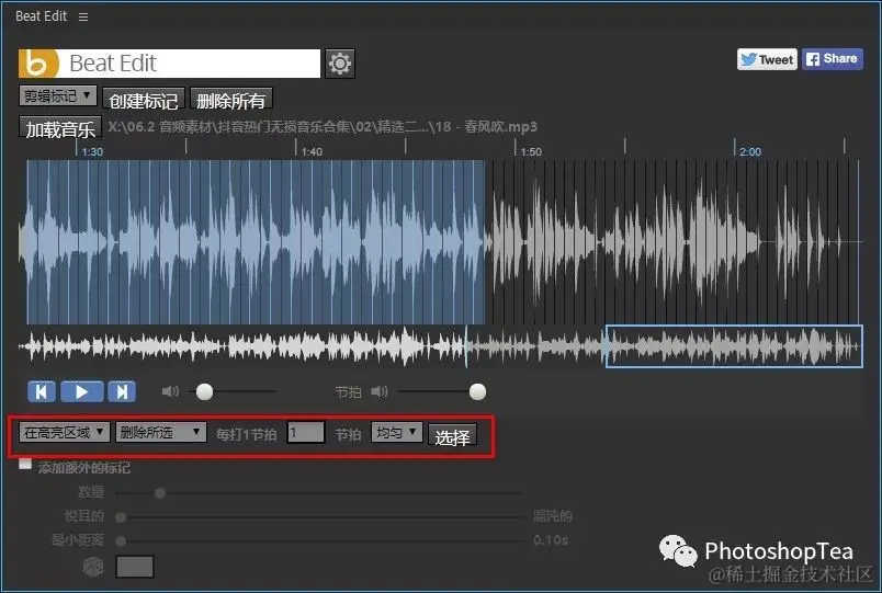 框选某段后,按下图参数,即可删除这一段的节拍点。