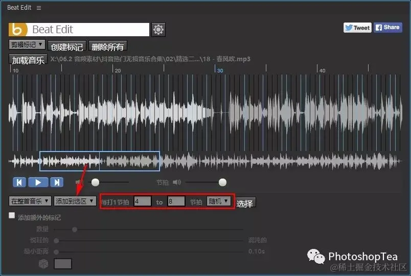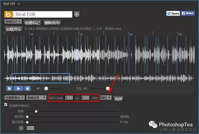 提示:这并不是完全随机添加,还是与音乐素材的频率有关。V 2.0 版本可以通过 beat info 面板查看总的标记数。