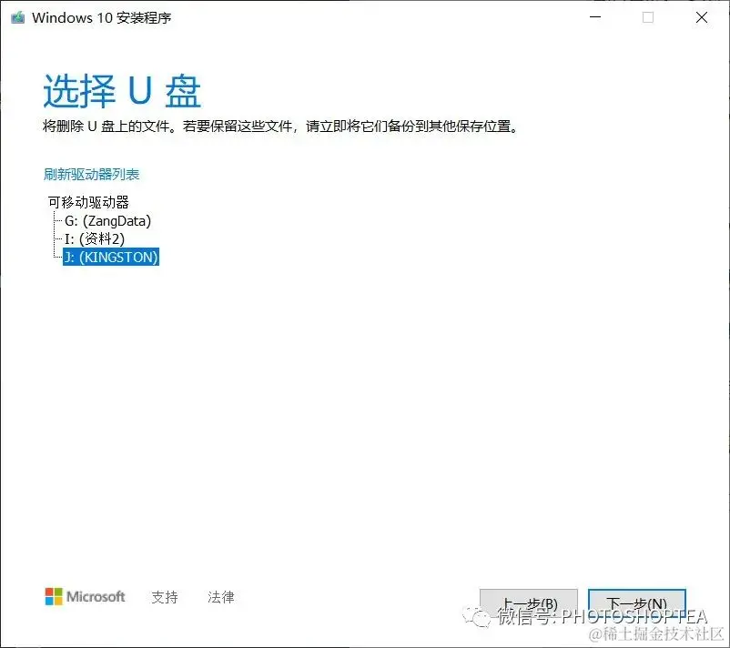 注意:切记不要选错。建议在之前拔掉所有其它 U 盘设备。