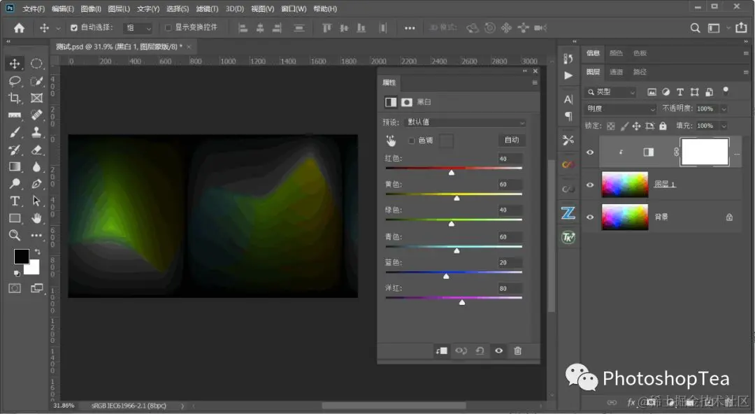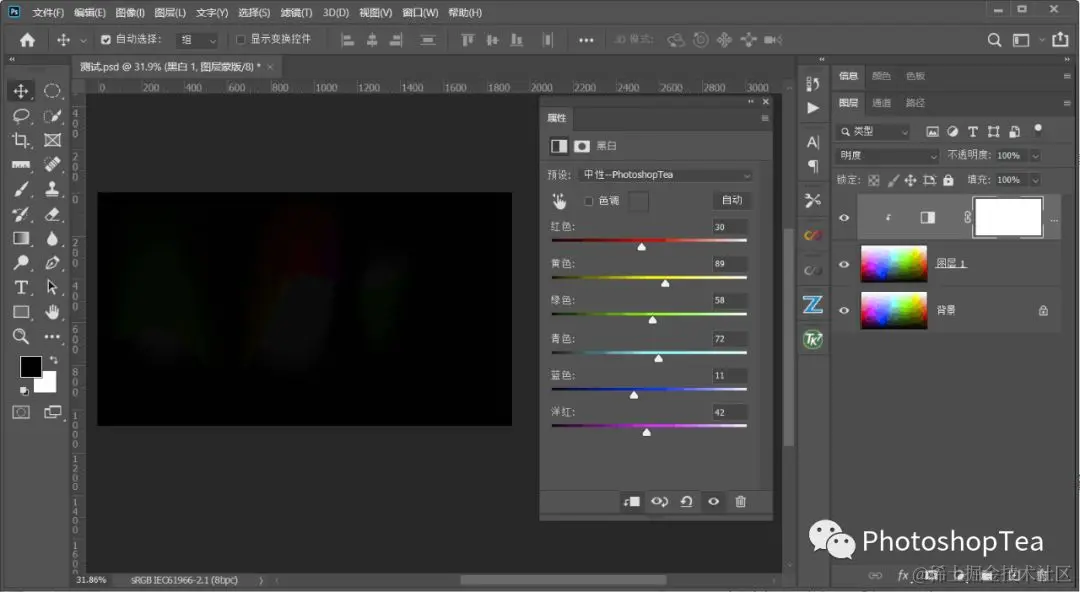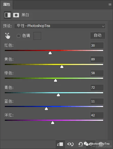 Ps菜单:图层/新建调整图层/黑白