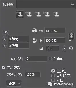 2、还可应用在两幅图像模式相同的图片上。通常需要进入“仿制源”面板,调整相关参数。有关知识请参阅《仿制图章工具》。