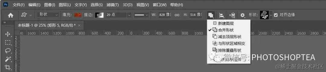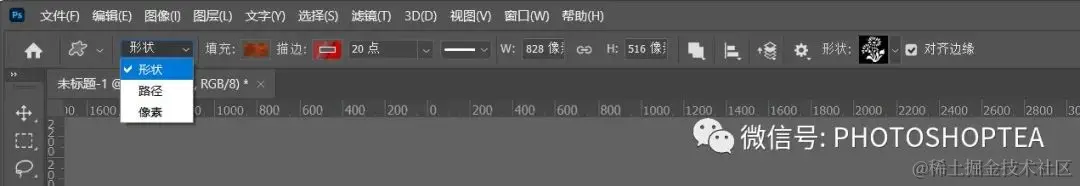 在 Ps 中,可以认为形状是有填充或描边的路径,操作方式也大同小异。