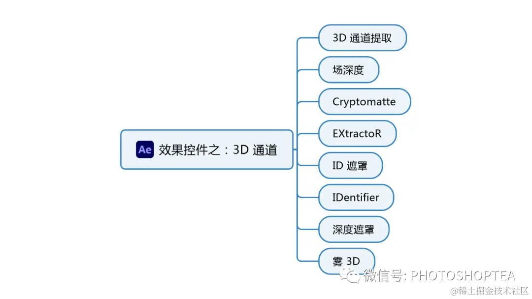 3D 通道效果主要结合其它 3D 程序使用。比如提取并利用通过 3Ds Max 创建的 .rpf 格式文件的内嵌信息。