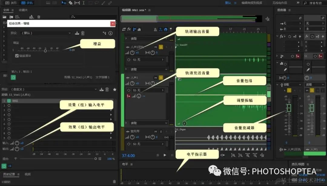 在Au中,不同位置的音量控件的名称有所不同,作用也有些差异。不过,它们的本质都是增加或减少音频振幅的量。