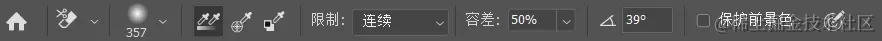 --不连续 Discontiguous:可以擦除工具圆圈内的所有与取样颜色一致以及在容差范围内的像素。