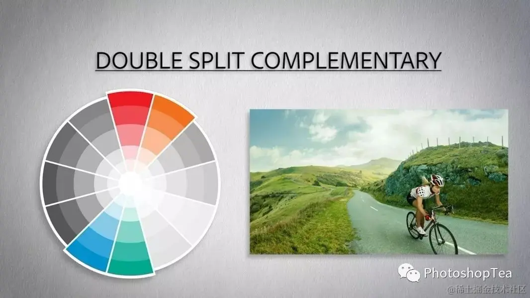 分离互补色可由两种或三种原色构成,同时搭配左右两边的色相。\