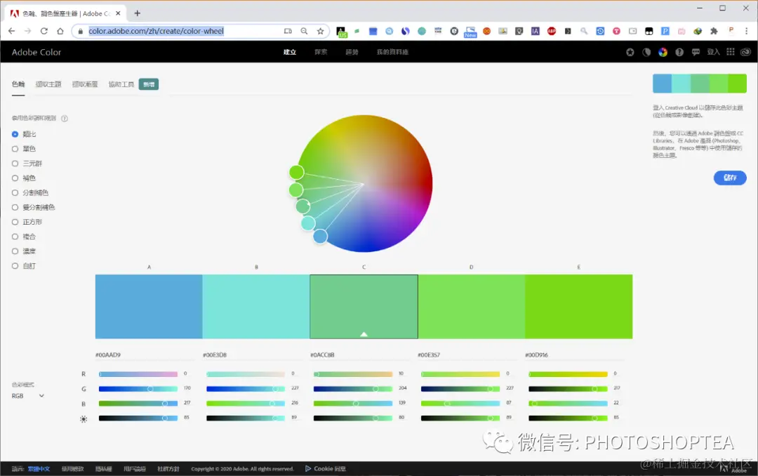 Ps菜单:窗口/扩展功能/Adobe Color Themes
