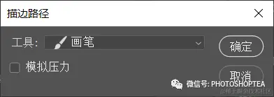 按 Alt/Opt 键点击“用画笔描边路径”按钮,可在弹出的“描边路径”对话框中选择各类使用笔刷的工具,包括铅笔、画笔、混合器画笔、涂抹、模糊、锐化等。