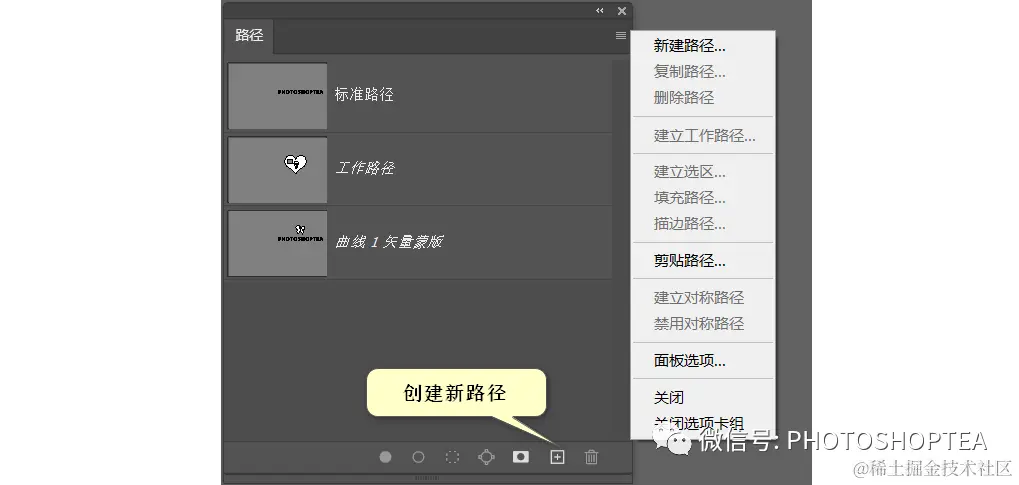 (3)将临时路径复制为(标准)路径:将临时路径拖至“创建新路径”按钮上。