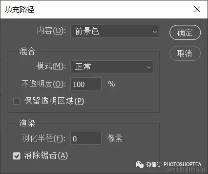 填充路径时,请事先设置好前景色颜色;或者,按 Alt/Opt 键点击“用前景色填充路径”按钮,在弹出的“填充路径”对话框中设置填充颜色、图案、不透明度等参数。
