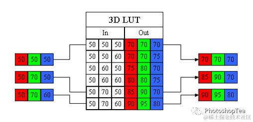 RGB输出 = LUT( R输入,G输入,B输入 )