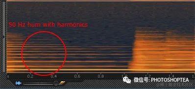 中国、日本、欧洲等地区的交流电频率是 50 赫兹,美国、加拿大、中国台湾等使用 60 赫兹。在频谱频率显示器中,嗡嗡声 Hum表现为 50Hz 或 60Hz 处的一条亮线,其上方还有几条较小的谐波线。