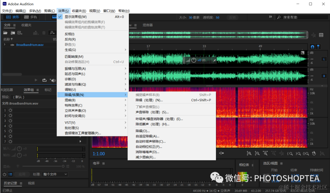 若不方便采样的话可使用Au菜单:效果/降噪/恢复/自适应降噪。