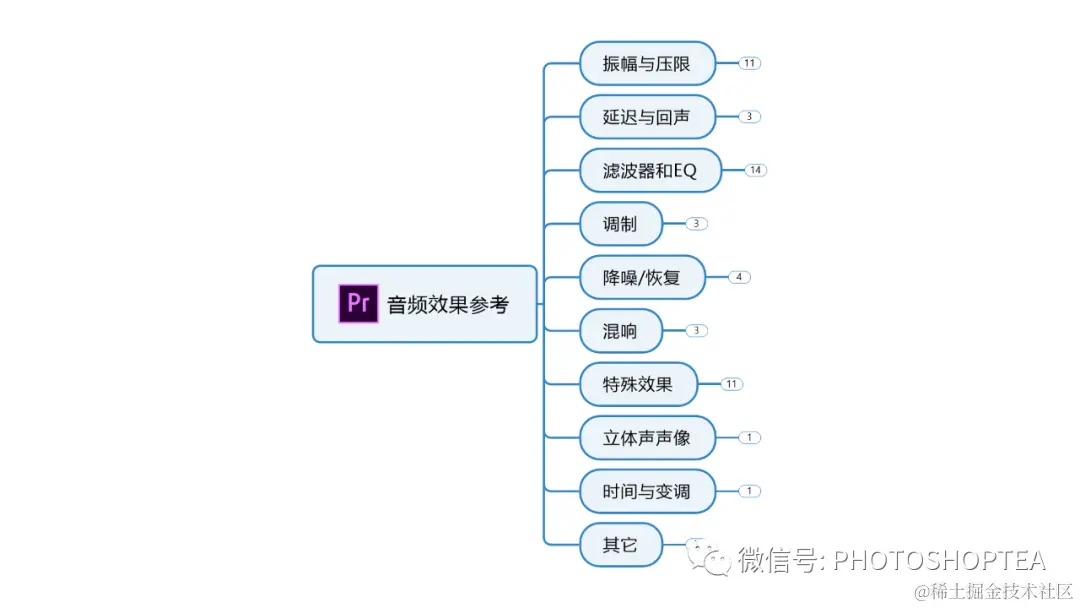 Premiere Pro包含了大量的音频效果。每种类别的效果器通常具有一定的类似功能。