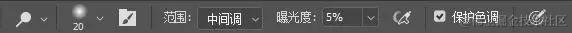 工具参数建议:范围:一般选中间调;曝光度:5%~10%;保护色调:一般勾选,可视情况而定。
