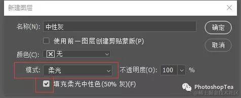 中性灰图层的混合模式建议改为“柔光”,勾选“填充柔光中性色”。