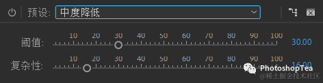 复杂性 Complexity:表示噪声复杂度。设置越高,应用的处理越多,但可能降低音质。设置范围为 1 到 100;默认值为 16。