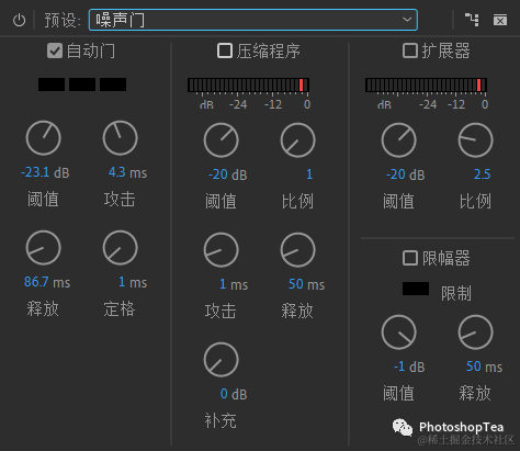 --增益 Gain:在压缩之后增加或降低振幅的量。