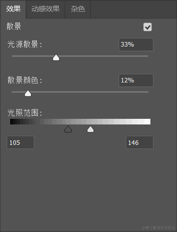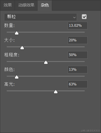 控制杂色的颗粒大小,仅适用于颗粒类型的杂色。