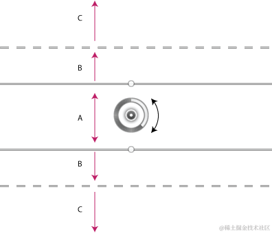 拖动线条移动,也可旋转。按住 Alt/Opt 键可等比调节,按住 Shift 键可单边调整。
