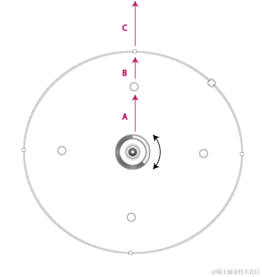 (2)通过线上的小圆点可旋转或改变圆的程度。
