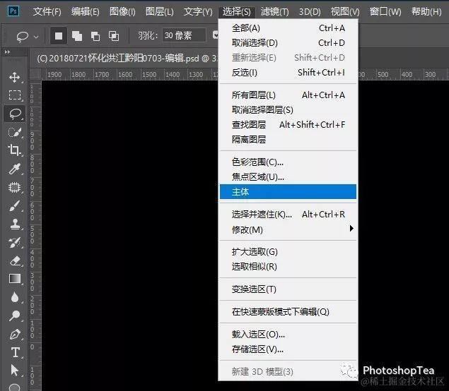 PS自2018年1月版以后新增了一个功能,称之为“主体 Subject”,被置于“选择”菜单下。只需点击一下,即可自动选出画面中的“主体”。