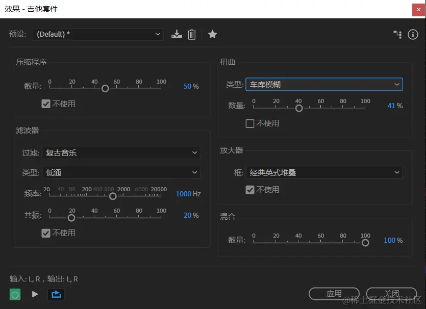 减少动态范围以保持一致的振幅,并帮助吉他音轨在混合音频中突出。