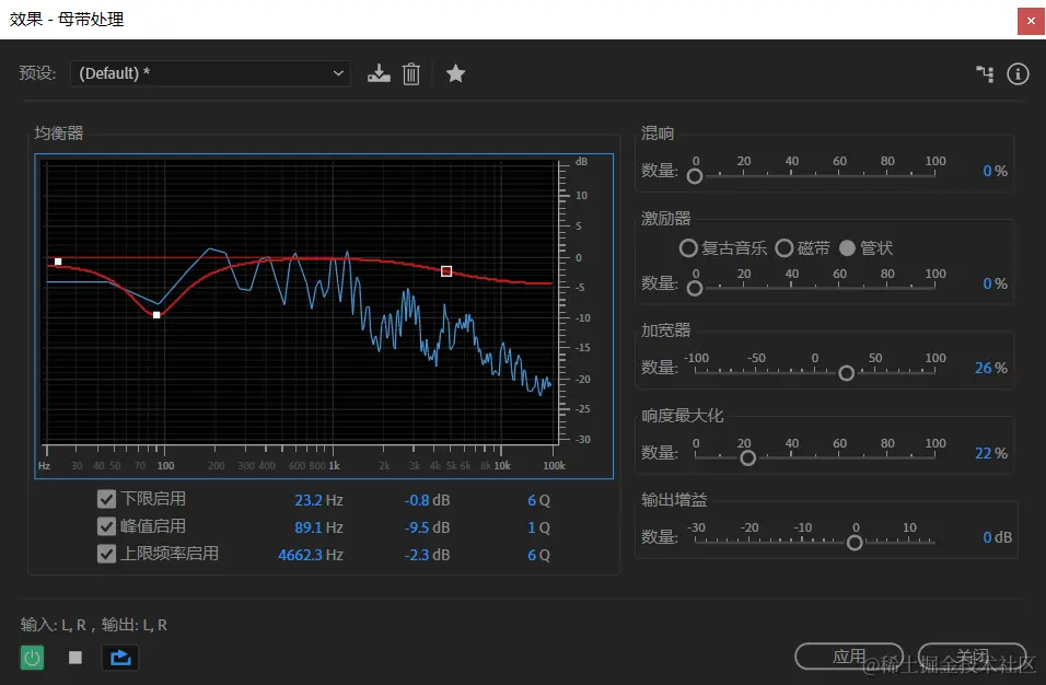 母带处理描述优化特定介质(如电台、视频、CD 或 Web)音频文件的完整过程。在 Adobe Audition 中,可以此效果对音频进行快速母带处理。