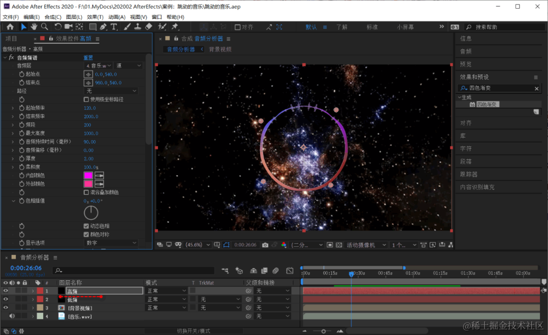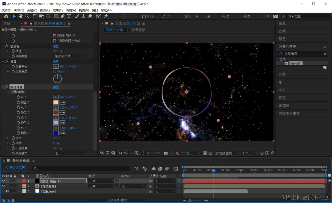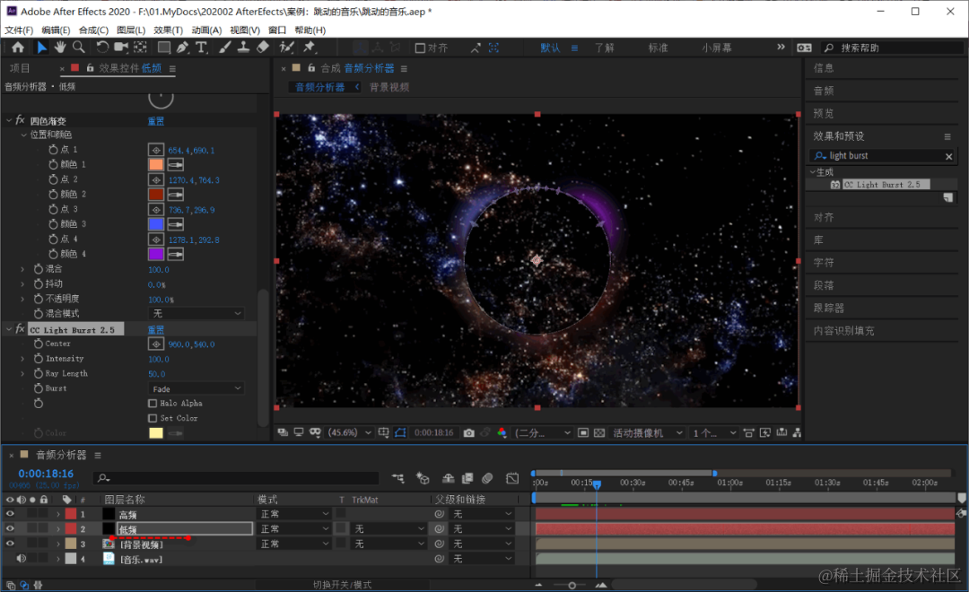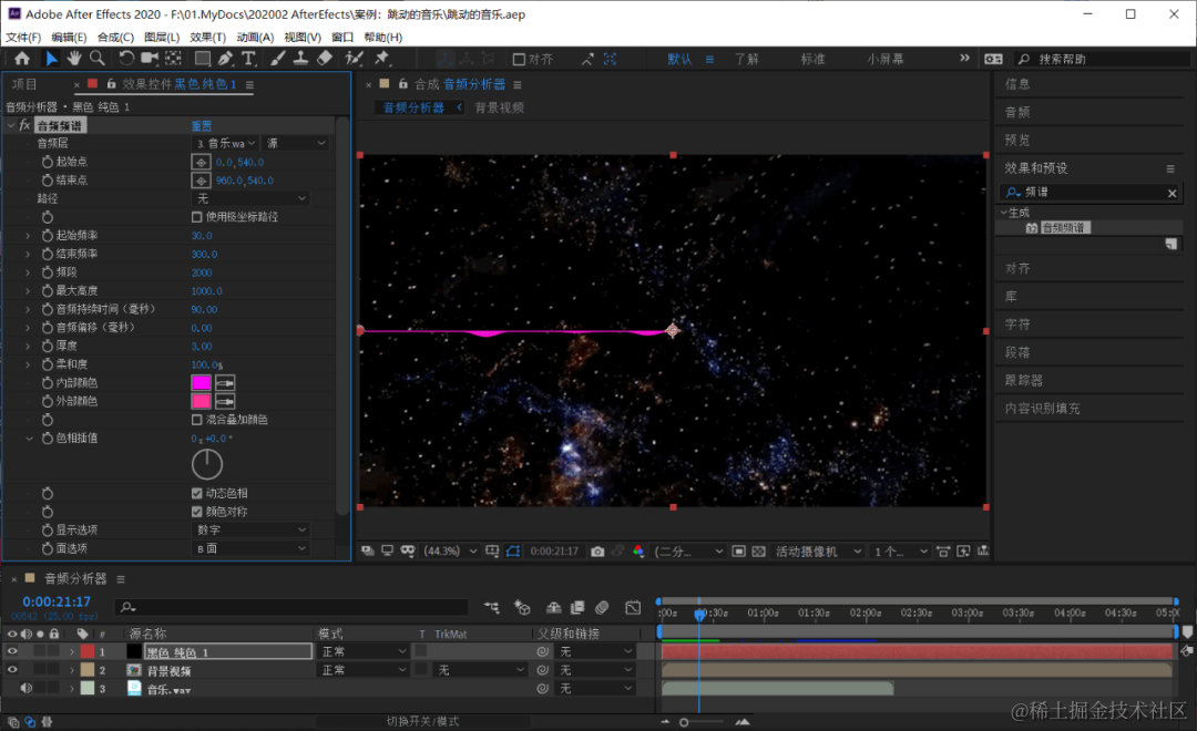 本文使用After Effects实现音频频谱显示,所使用的相关效果可供实际运用时参考。\