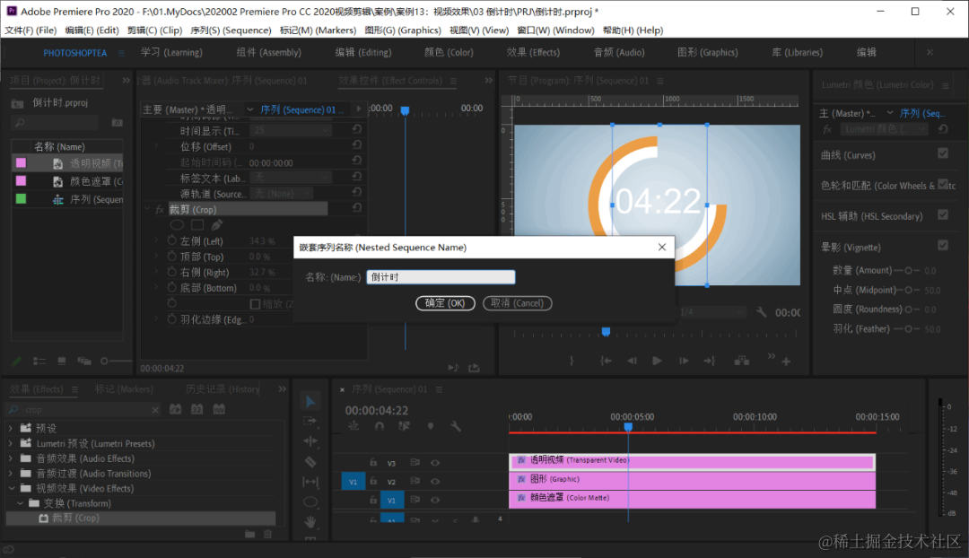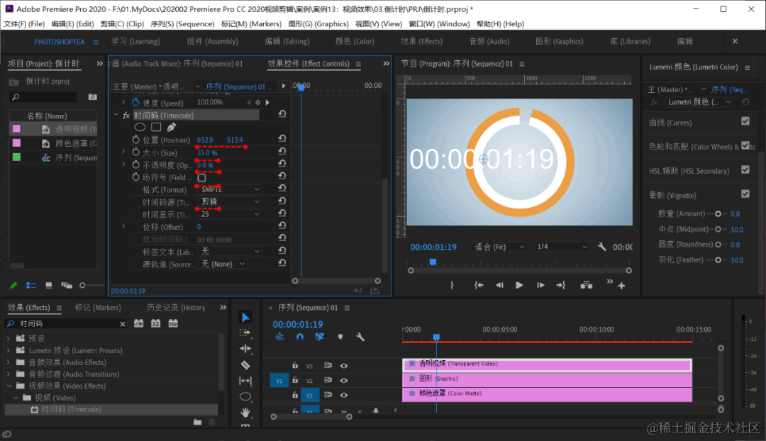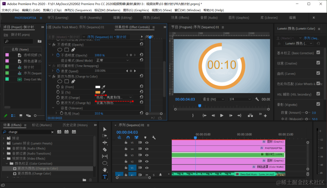 (6)添加更改为颜色视频效果或色彩视频效果,设置计时器的颜色。